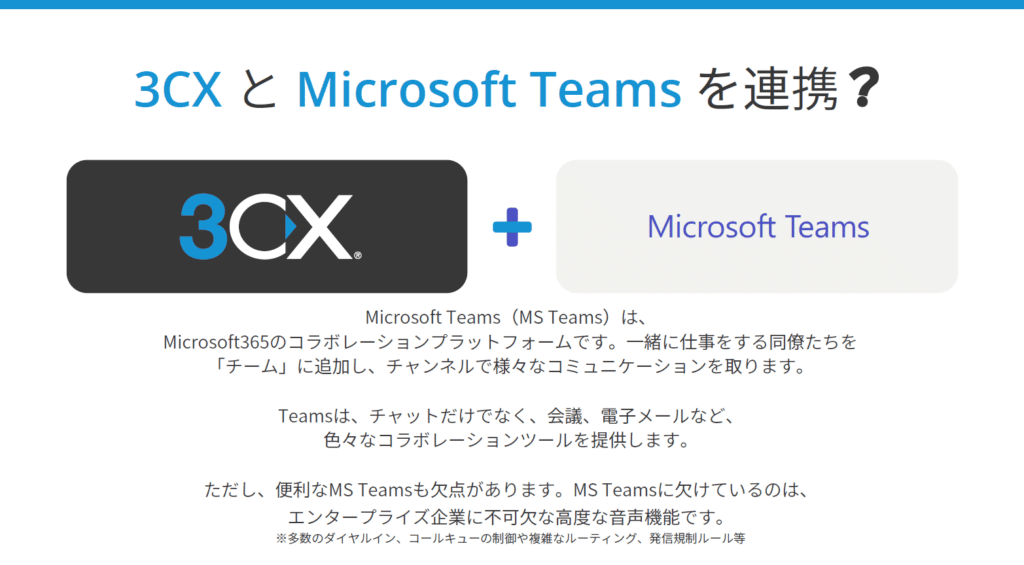 - そもそも全社的な方針としてITシステムをAWSに集約することが決まっていたのですが、電話についてはまだ手を付けられていませんでした。コミュニケーション効率を上げつつ、電話に関する固定間接費削減も達成できるIP-PBXサービスを探していて、3CXはその条件で探している中で見つけたサービスの一つでした。